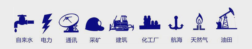 廣泛應用于:自來水、電力、通訊、采礦、建筑、化工廠、航海、天然氣、油田等行業